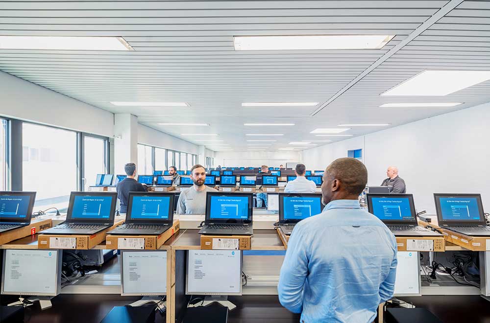 Christoph Voelter, Head of Technical Field Service about Leinfelden: "We can now dovetail the individual specialists much better: Logistics, cloning, roll-out and repair can work hand in hand, so customers don't have to worry about their IT - it just works.