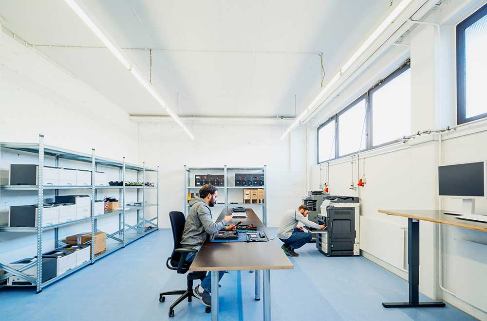 The Technical Field Service also takes care of warranty and repair for customers. This includes warranty processing with various manufacturers, our own repair of notebooks, printers and desktops as well as BSI-compliant deletion of old hardware.