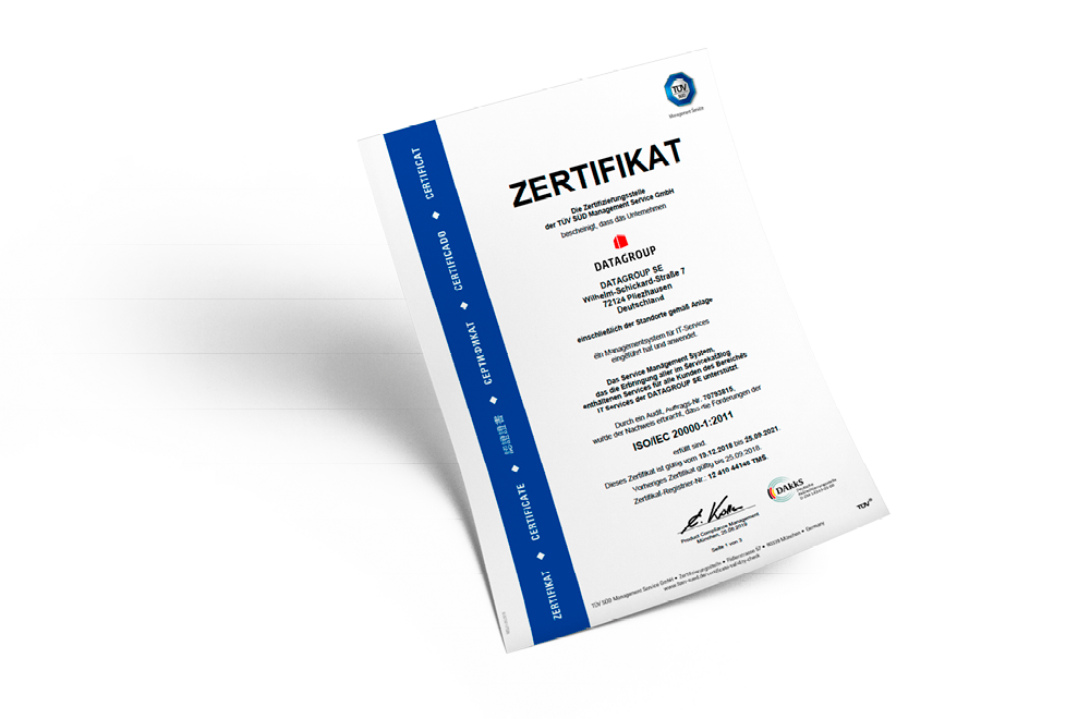 DATAGROUP is one of the few IT service providers whose complete IT service management processes are standardized and certified according to ISO specifications.