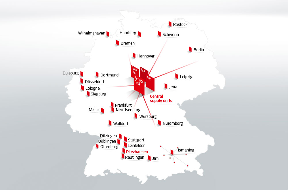 In our central delivery units, we virtually combine parts of service production – such as Service Desk, Data Center and SAP Services – and thus ensure economies of scale and quality through specialization and better utilization of experts and systems.