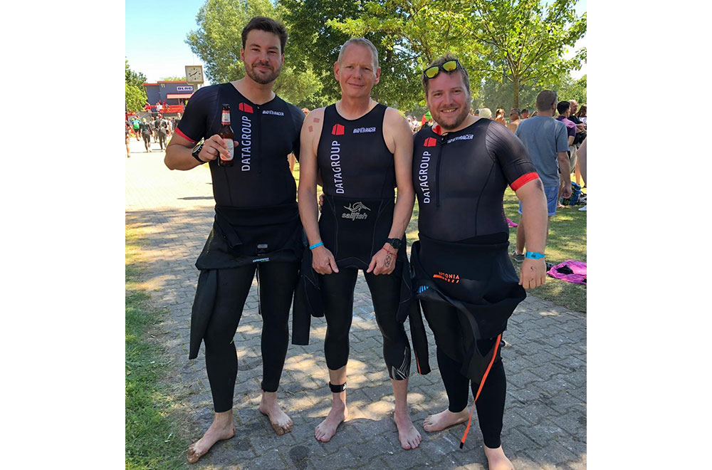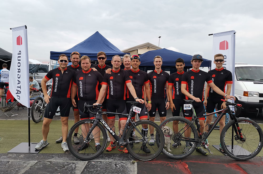 „Angefangen hat alles mit der Idee unseres Vorstands, mit mehreren DATAGROUP Mitarbeitern am 24 Stunden MTB-Rennen am Flughafen in Stuttgart an den Start zu gehen“, so Triathlet Carsten Wink. Weitere Kollegen aus anderen Disziplinen schlossen sich begeistert an, sodass nach wenigen Monaten bereits ein 15-köpfiges Team zusammengekommen war. Was dem neu entstandenen Team aber noch fehlte, war ein Name. Bei diesem waren sich die Mitglieder einig: Er soll den Ausdauersport widerspiegeln und das Unternehmen repräsentieren. Auch die Frage nach dem Team-Outfit war schnell geregelt. „Wir stellten unsere Idee bei DATAGROUP vor und bereits Anfang 2018 wurden wir vom Unternehmen mit passenden Team-Anzügen ausgestattet“, erzählt Carsten Wink. Neben den Anzügen übernimmt DATAGROUP auch die Startgelder für das Team.