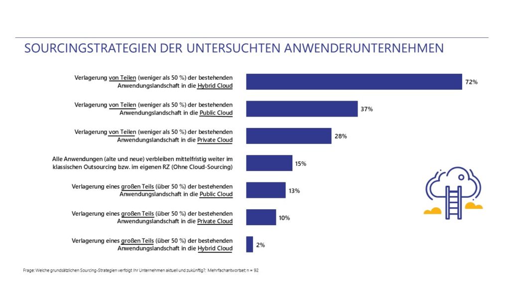 Die Ergebnisse belegen, dass die Cloud-Transformation in Deutschland in vollem Gang ist. 46% der befragten Unternehmen beziehen bereits IT-Ressourcen aus der Cloud und 72% der IT-Entscheider möchten Teile ihrer IT-Landschaft in hybriden Cloud-Modellen betreiben. Allerdings wird auch deutlich, dass große Unsicherheit bei Unternehmen in Bezug auf Aspekte der Datensicherheit und der Vertragsgestaltung mit Cloud-Anbietern herrscht. Dazu kommt die große Komplexität der IT-Landschaften und hybriden Modelle, die zu höherem Beratungsbedarf führen.